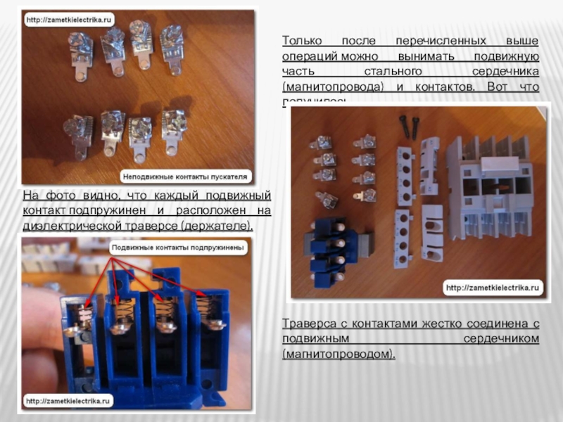 Траверса с контактами жестко соединена с подвижным сердечником (магнитопроводом).