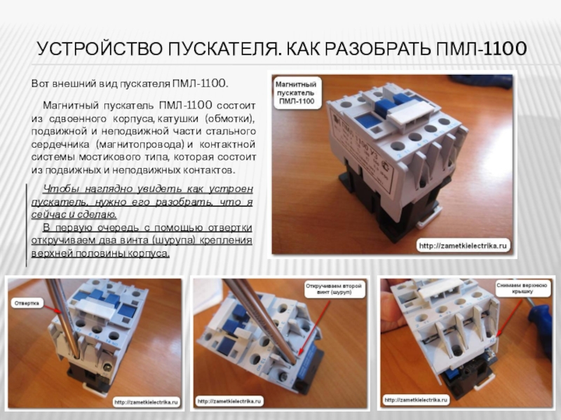 А вот наглядная имитация отключенного магнитного пускателя ПМЛ-1100 без корпуса.