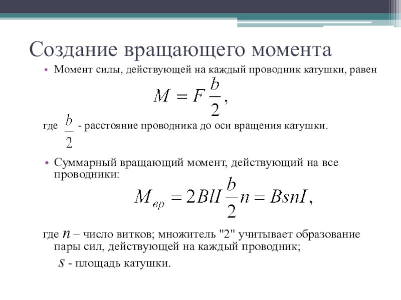 где n – число витков; множитель "2" учитывает образование пары сил, действующей на каждый проводник;