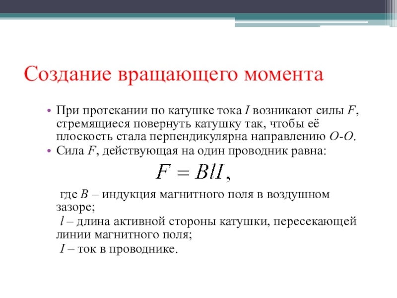 стремящиеся повернуть катушку так, чтобы её плоскость стала перпендикулярна направлению О-О.