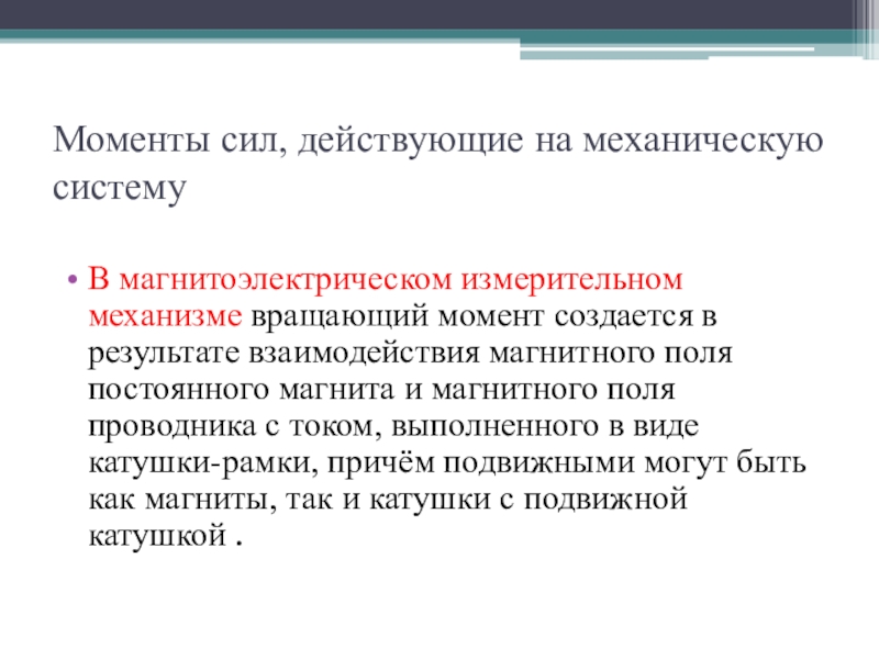 В магнитоэлектрическом измерительном механизме вращающий момент