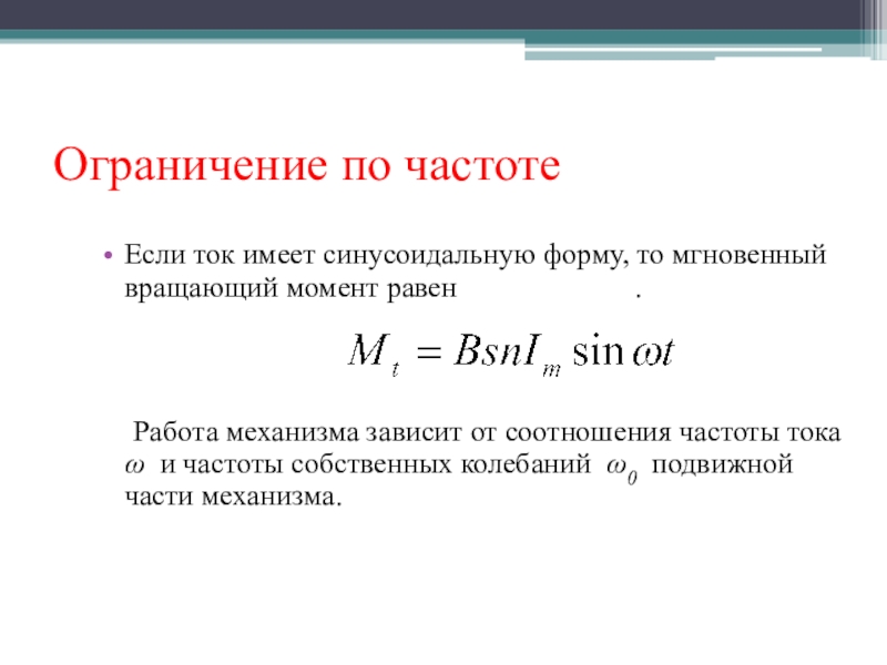 Работа механизма зависит от соотношения частоты тока ω и частоты собственных колебаний ω0 подвижной части механизма.