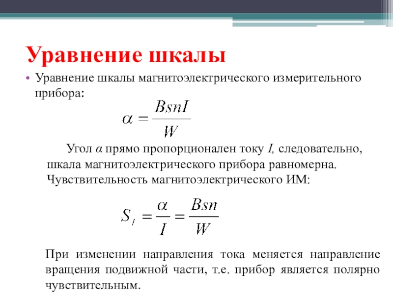 Уравнение шкалы магнитоэлектрического измерительного прибора: