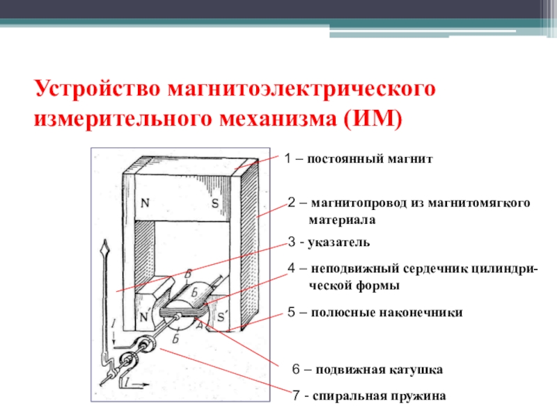 Слайд 3Устройство магнитоэлектрического измерительного механизма (ИМ)