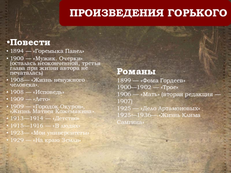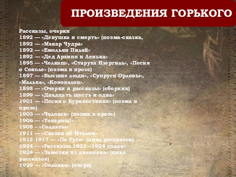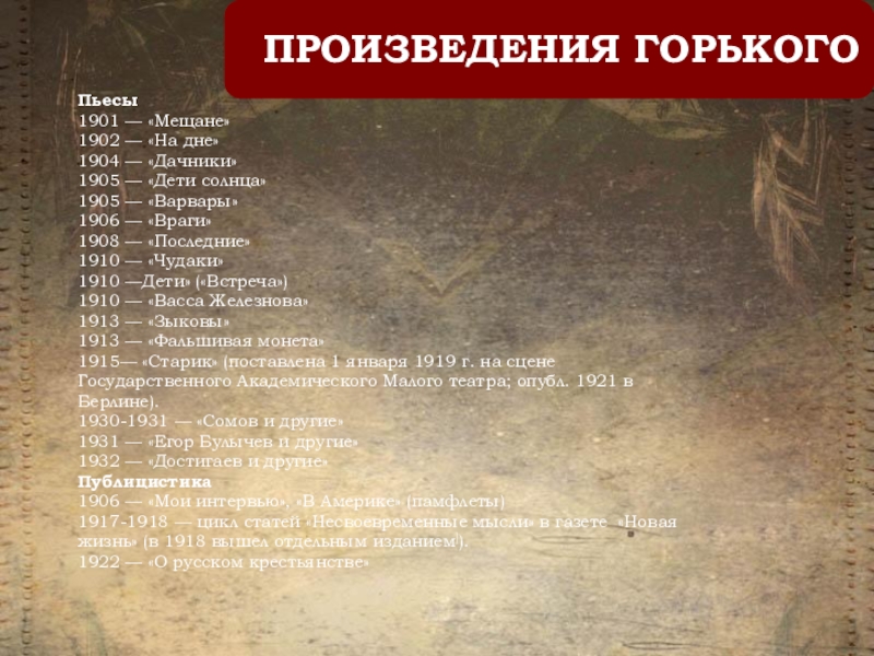 ПРОИЗВЕДЕНИЯ ГОРЬКОГО