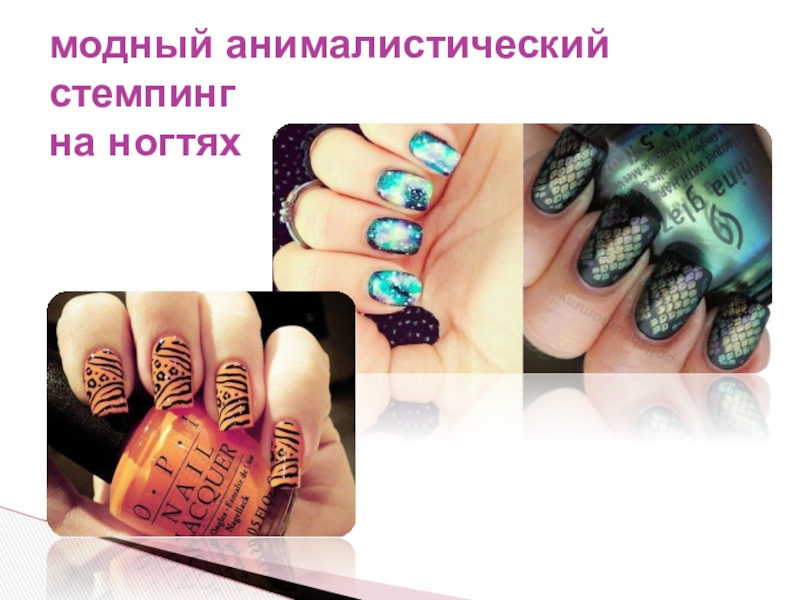 Слайд 12модный анималистический стемпинг на ногтях