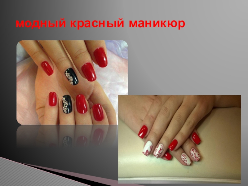 Слайд 11модный красный маникюр