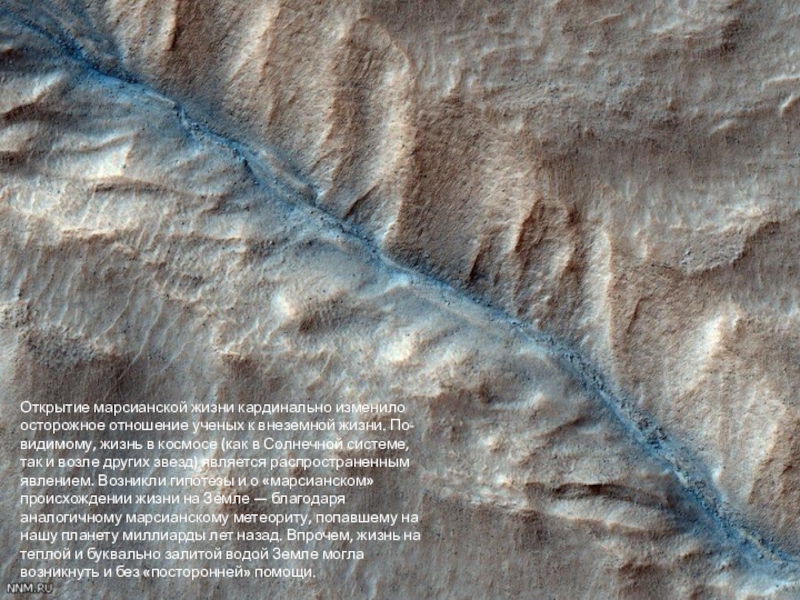 Слайд 16Открытие марсианской жизни кардинально изменило осторожное отношение ученых к внеземной жизни.