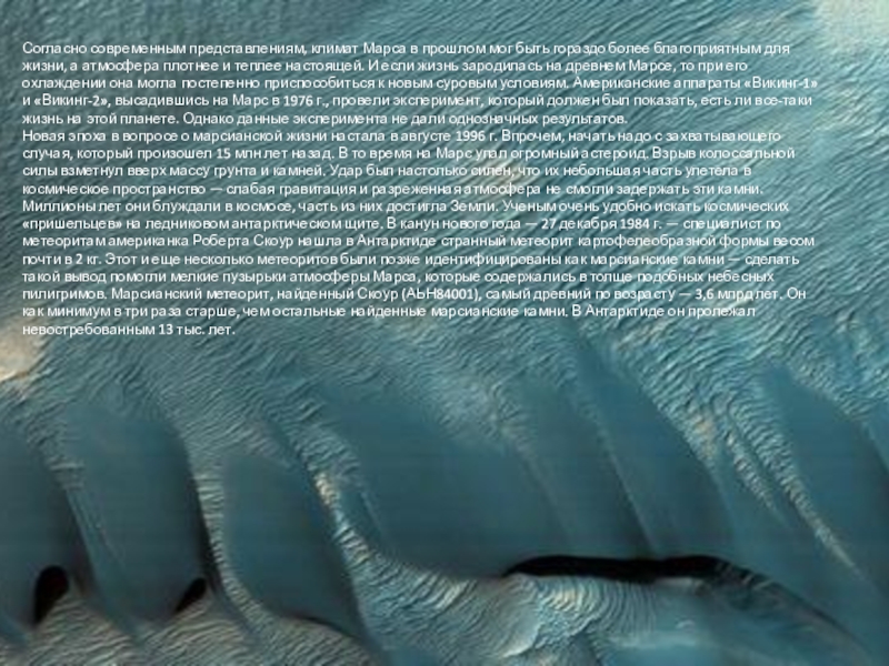 Слайд 14Согласно современным представлениям, климат Марса в прошлом мог быть гораздо более