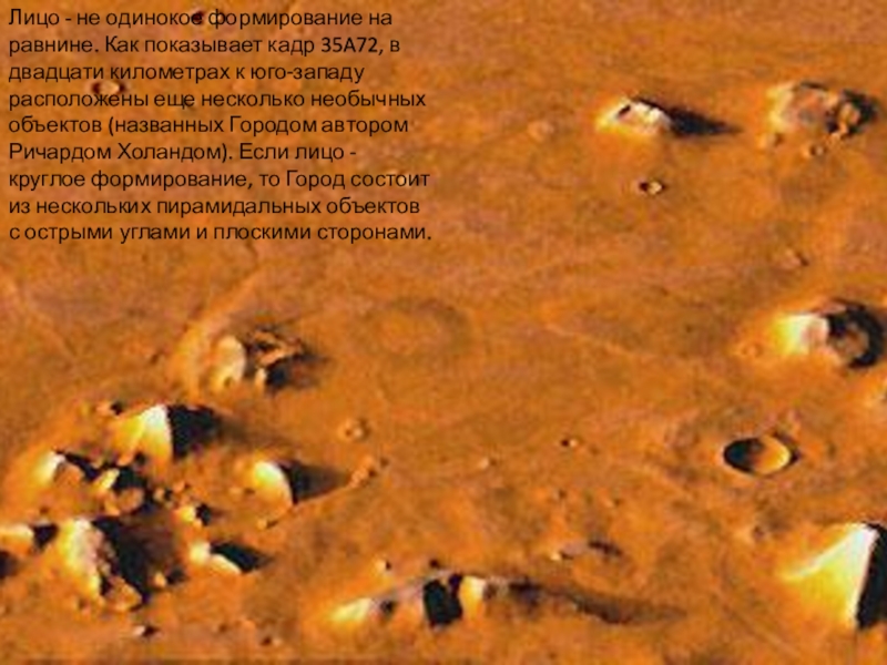 Слайд 18Лицо - не одинокое формирование на равнине. Как показывает кадр 35A72,