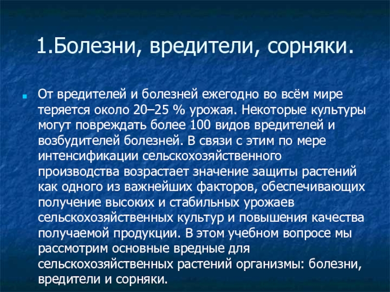 1. Вредители и болезни с/х растений. Сорные