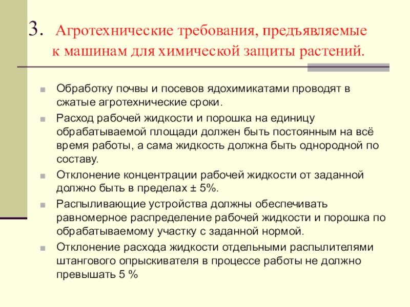 3. Агротехнические требования предъявляемые к машинам для химической защиты растений.