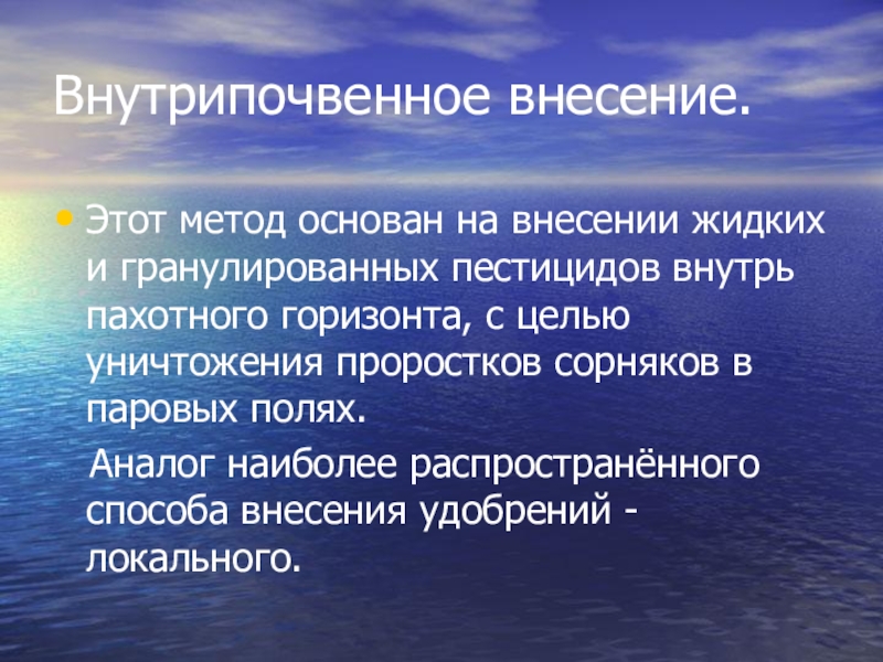 Слайд 43Внутрипочвенное внесение.
