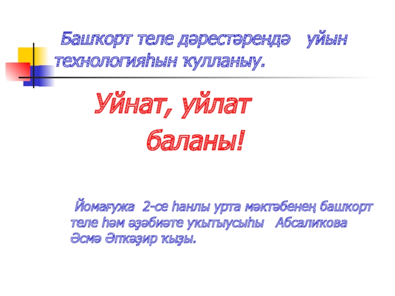 Йомағужа 2-се һанлы урта мәктәбенең башҡорт теле һәм әҙәбиәте уҡытыусыһы Абсалиҡова Әсмә Әпҡәҙир ҡыҙы.
