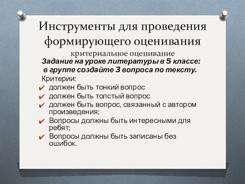 Критериальное оценивание результатов учебного занятия, выполнения учебной задачи.