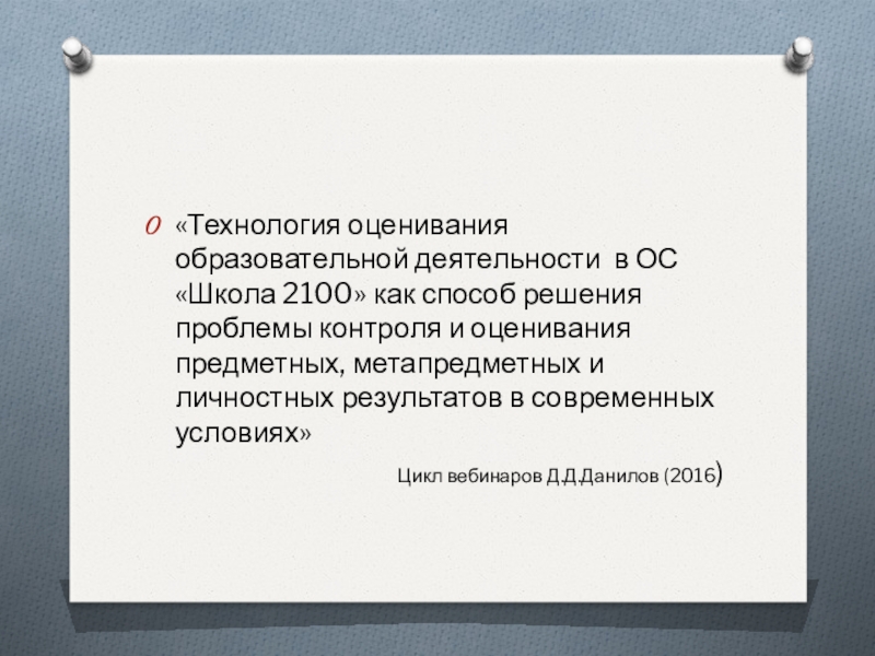 Слайд 16«Технология оценивания образовательной деятельности в ОС «Школа 2100» как способ решения