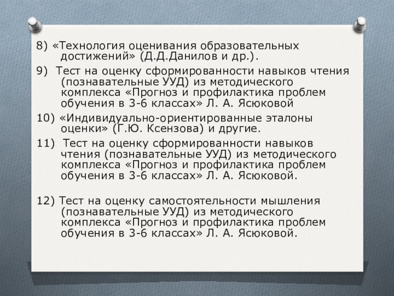 Слайд 218) «Технология оценивания образовательных достижений» (Д.Д.Данилов и др.).