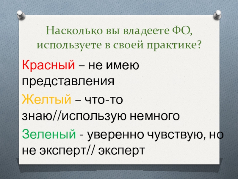 Слайд 4Насколько вы владеете ФО, используете в своей практике?