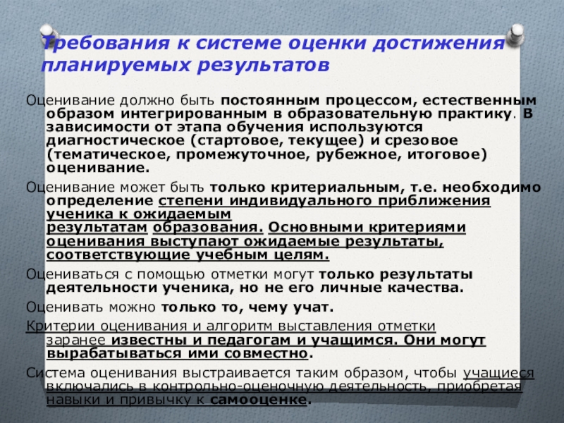 Слайд 8Требования к системе оценки достижения планируемых результатов