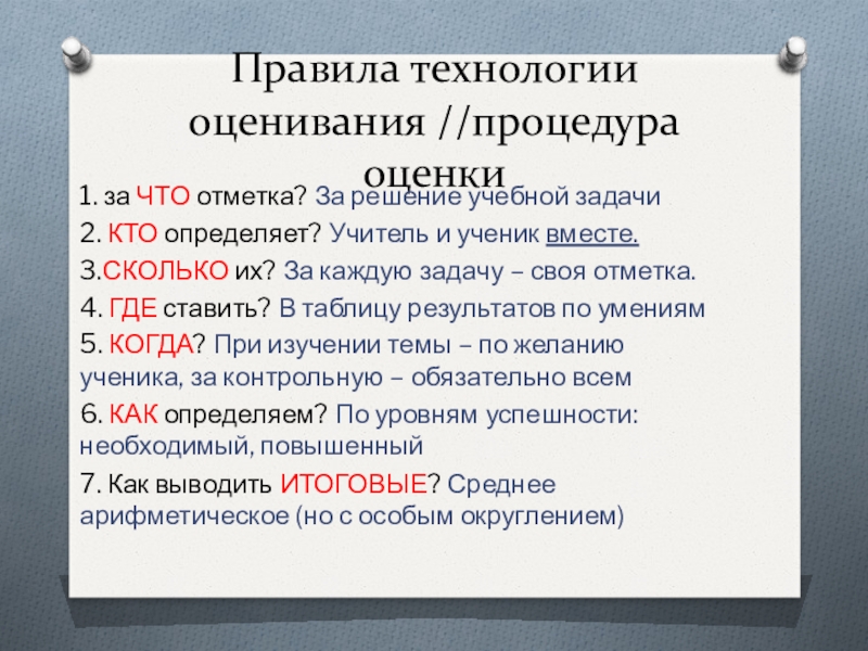 Критерии оценивания и алгоритм выставления отметки заранее известны и педагогам и учащимся. Они могут вырабатываться ими совместно.
