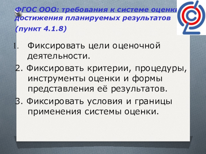 Слайд 7ФГОС ООО: требования к системе оценки достижения планируемых результатов