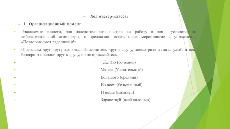 установления доброжелательной атмосферы, я предлагаю начать наше мероприятие с упражнения «Поздороваемся ладошками!».