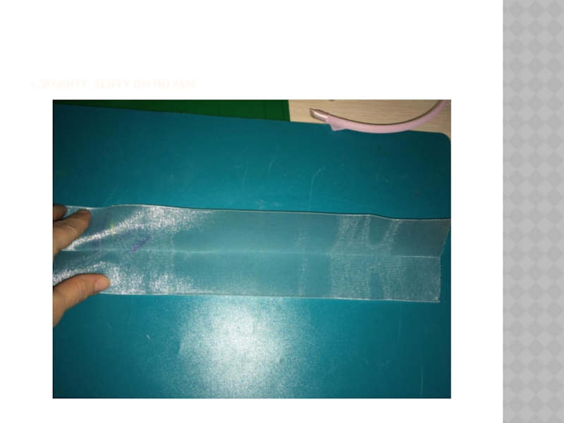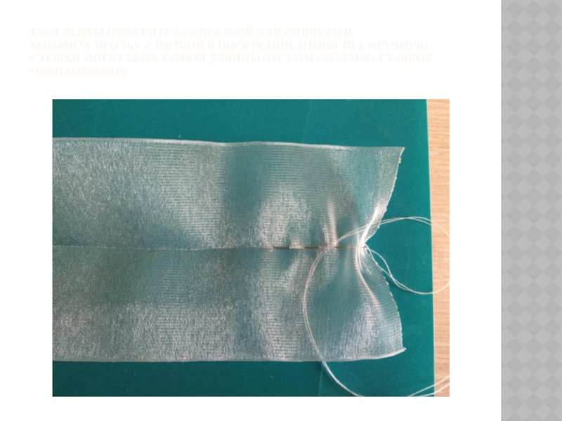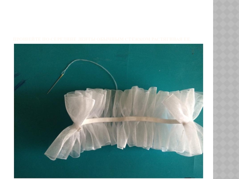 Слайд 8Прошейте по середине ленты обычным стежком растягивая ее.
