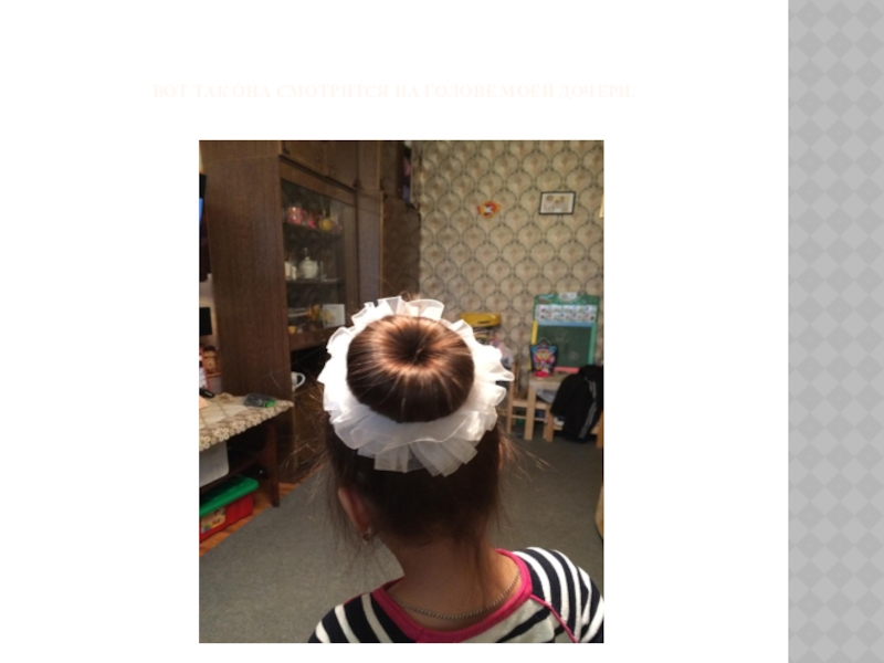 Слайд 11Вот так она смотрится на голове моей дочери.