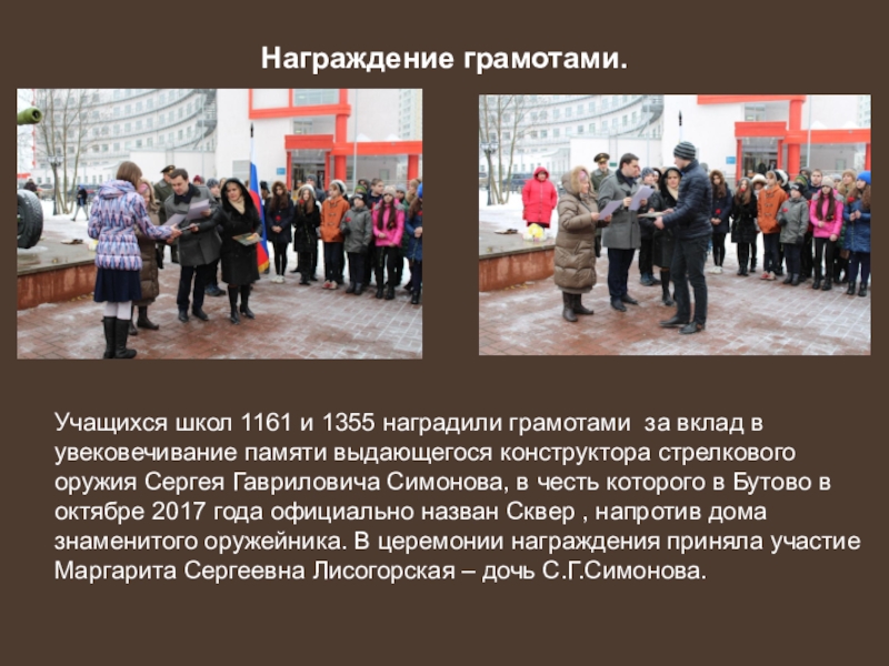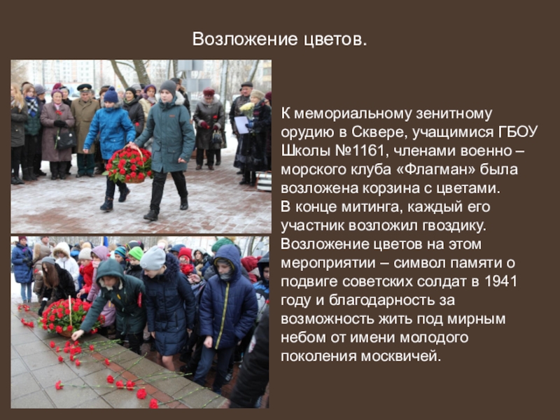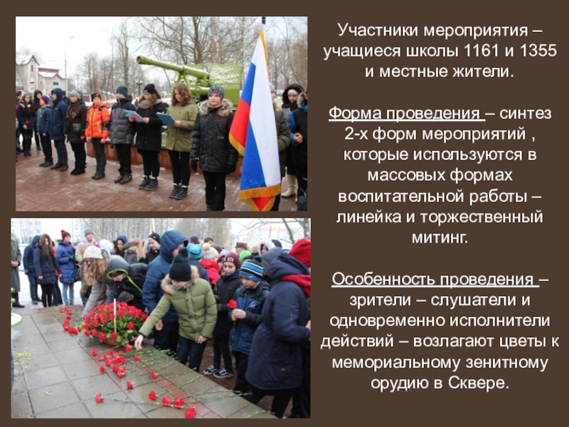Место проведения – Сквер защитников московского неба у ГБОУ Школы № 1161.