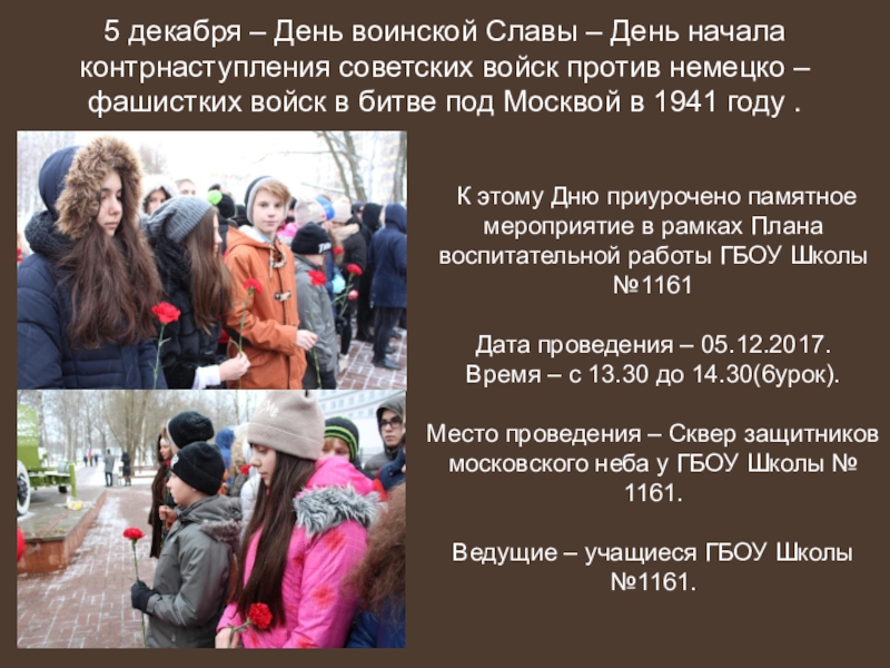 К этому Дню приурочено памятное мероприятие в рамках Плана воспитательной работы ГБОУ Школы №1161