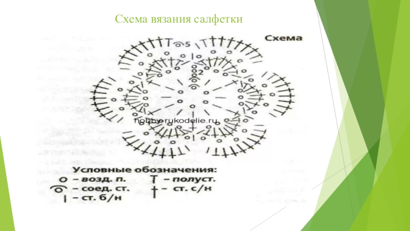 Столбик с накидом: Делают накид на крючок, вводят крючок в петлю предыдущего ряда или цепочки (тогда в 3-ю петлю от крючка, не считая петли на крючке), захватывают нитку и вытягивают петлю до уровня петли, лежащей на крючке. На крючке образовались 3 петли (петля, накид, петля). Затем захватывают нитку и протягивают ее через 2 первые петли на крючке (петля и накид), снова захватывают нитку и протягивают ее через 2 последние петли на крючке.