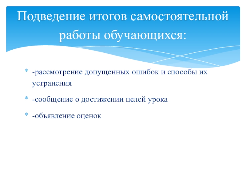 Подведение итогов самостоятельной работы обучающихся: