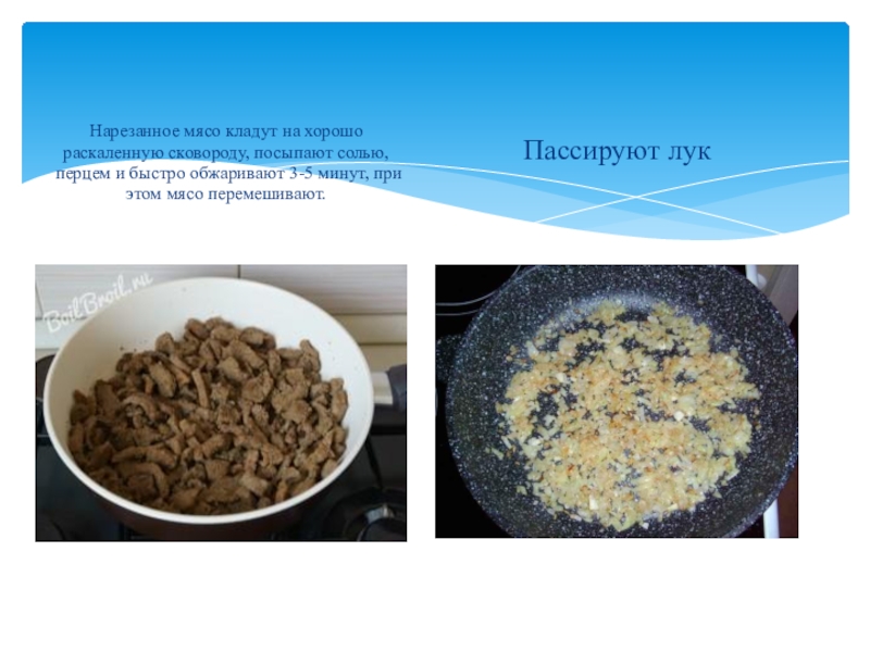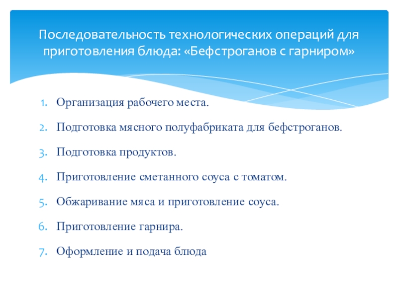 Последовательность технологических операций для приготовления блюда: «Бефстроганов с гарниром»