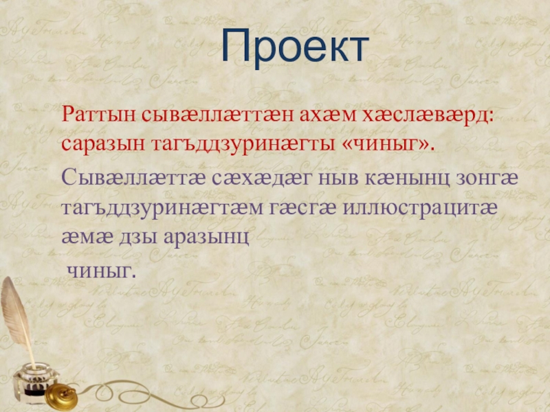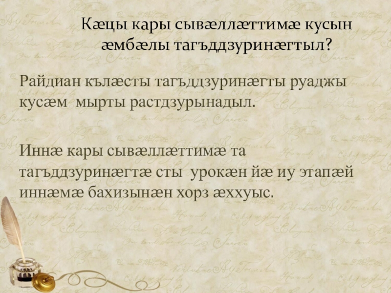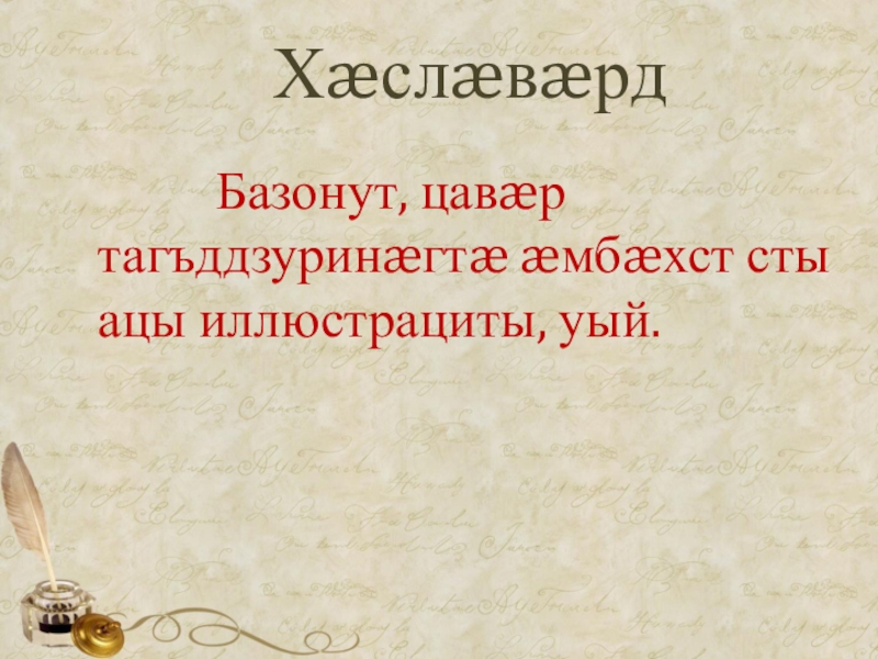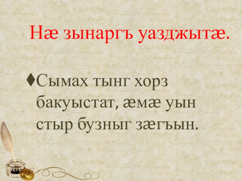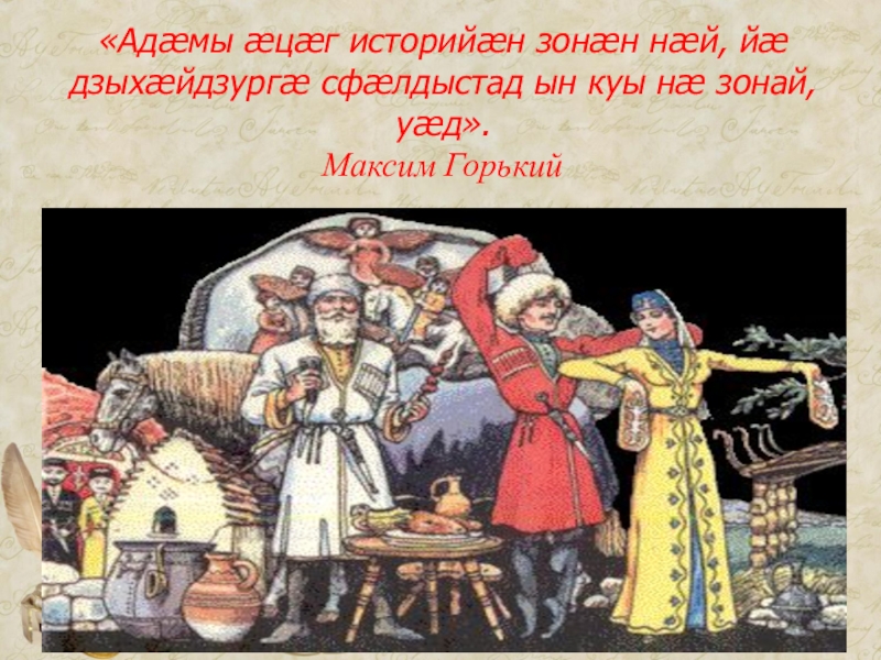 Слайд 2«Адæмы æцæг историйæн зонæн нæй, йæ дзыхæйдзургæ сфæлдыстад ын куы нæ