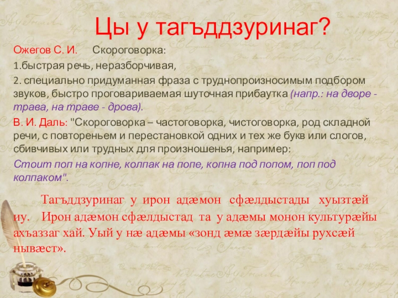 Презентация, доклад на тему Мастер-класс Скороговорки на уроках осетинского языка