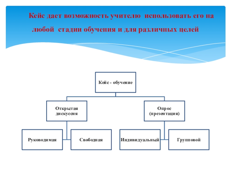 Слайд 10Кейс дает возможность учителю использовать его на любой стадии обучения и