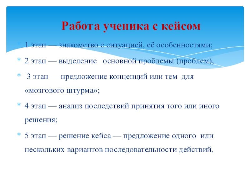 5 этап — решение кейса — предложение одного или нескольких вариантов последовательности действий.