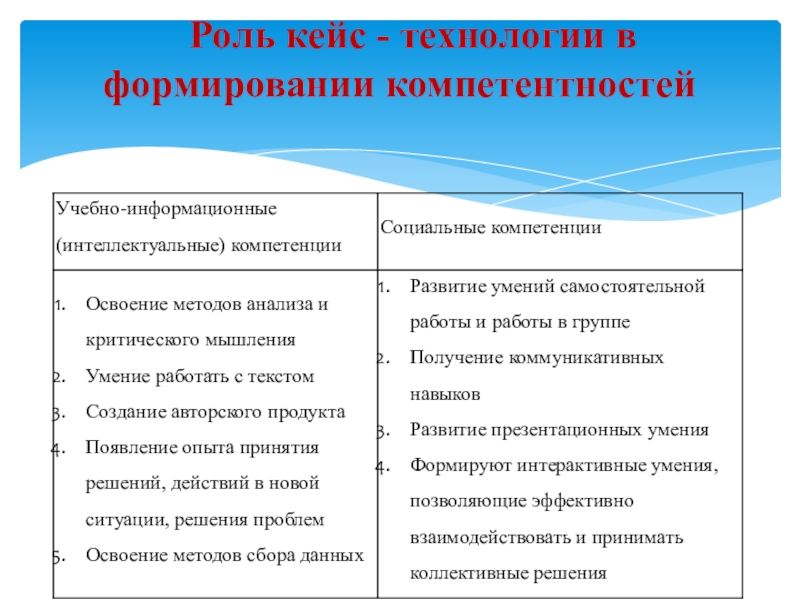 Слайд 9Роль кейс - технологии в формировании компетентностей