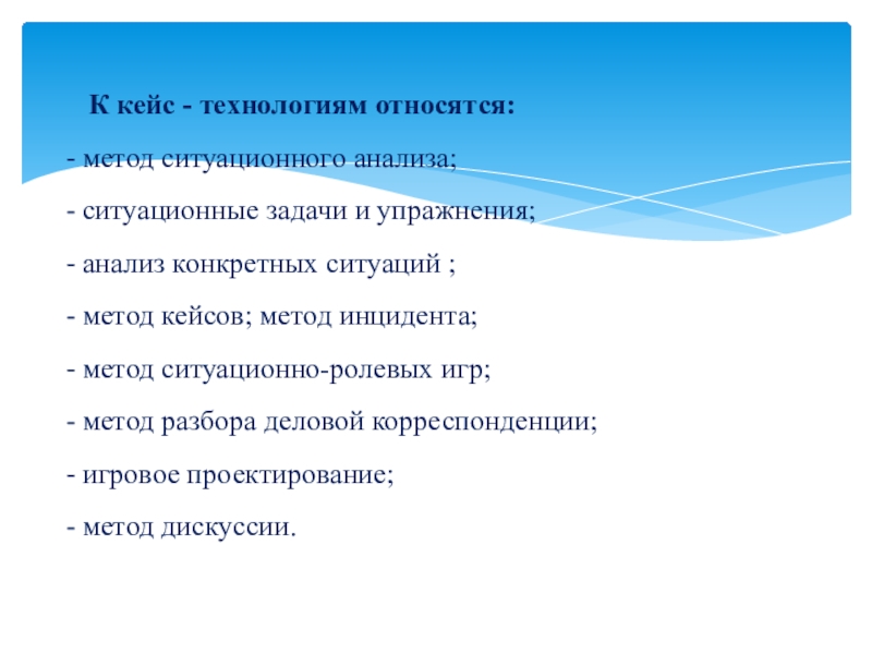 Научно-исследовательские кейсы. Они выступают моделями для получения нового знания о ситуации и поведения в ней. Обучающая функция сводится к исследовательским процедурам.