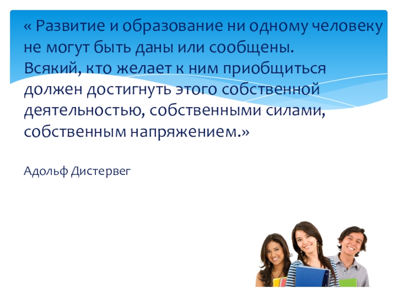 Слайд 2« Развитие и образование ни одному человеку не могут быть даны