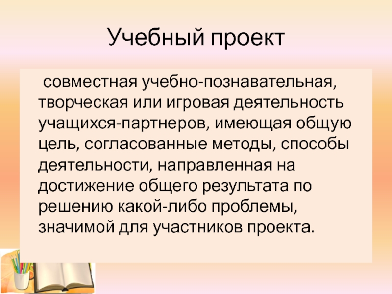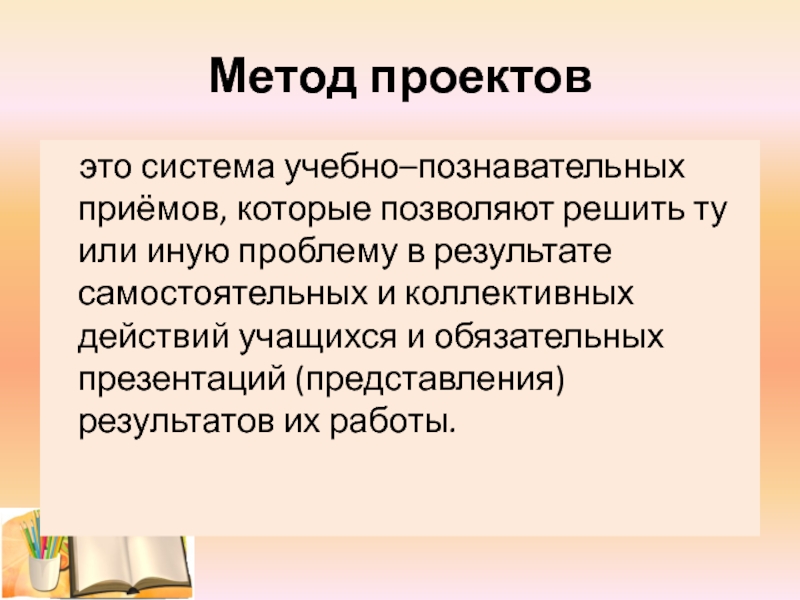 или иную проблему в результате самостоятельных и коллективных действий учащихся и обязательных презентаций (представления)результатов их работы.