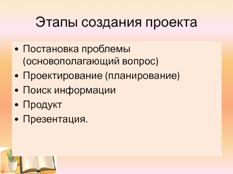 поисковый (поиск форм представления информации и выбор инструментальных средств реализации);