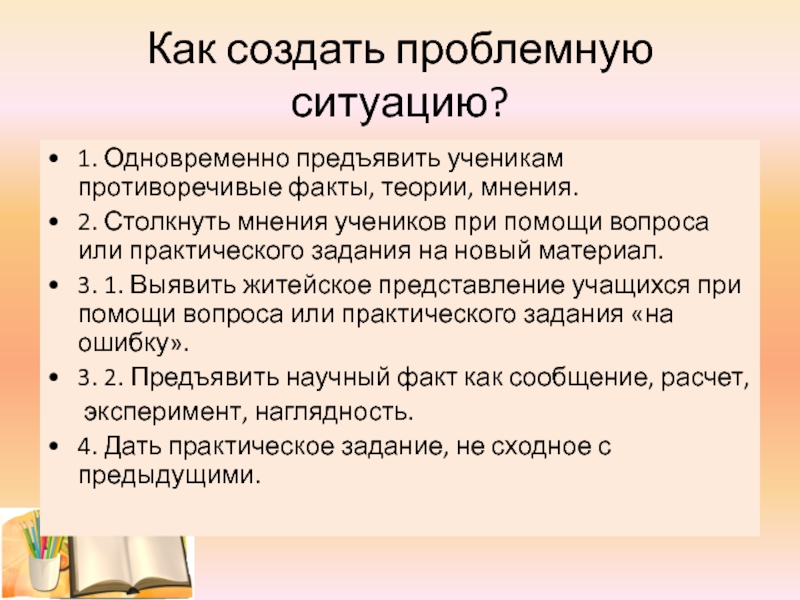 1. Одновременно предъявить ученикам противоречивые факты, теории, мнения.