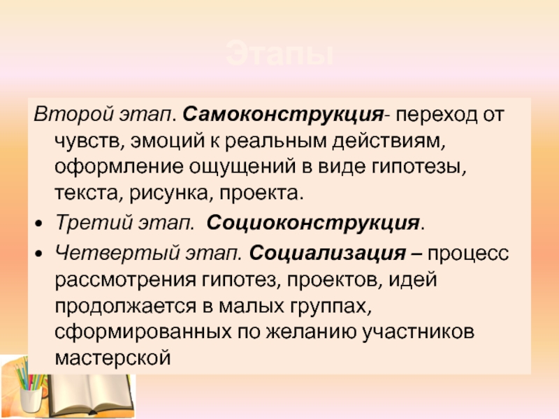 Второй этап. Самоконструкция- переход от чувств, эмоций к реальным действиям, оформление