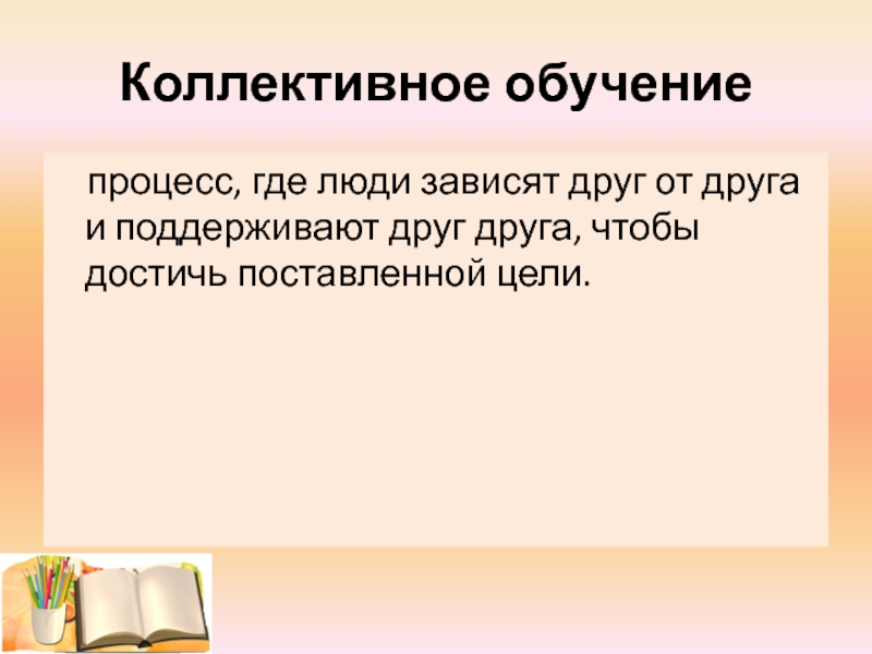 Коллективная форма обучения означает такую организацию обучения, при которой все участники работают друг с другом в парах и состав пар периодически меняется.