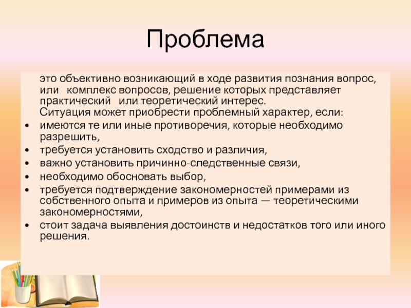 или комплекс вопросов, решение которых представляет практический или теоретический интерес.