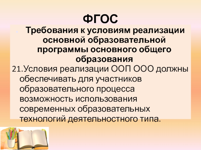 реализации ООП ООО должны обеспечивать для участников образовательного процесса возможность использования современных образовательных технологий деятельностного типа.