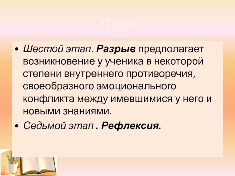 Шестой этап. Разрыв предполагает возникновение у ученика в некоторой степени внутреннего