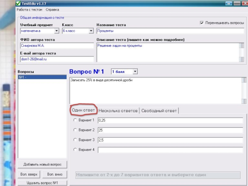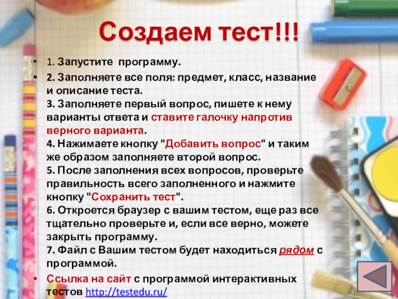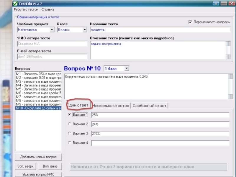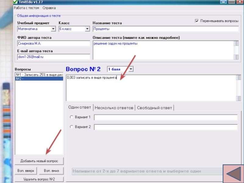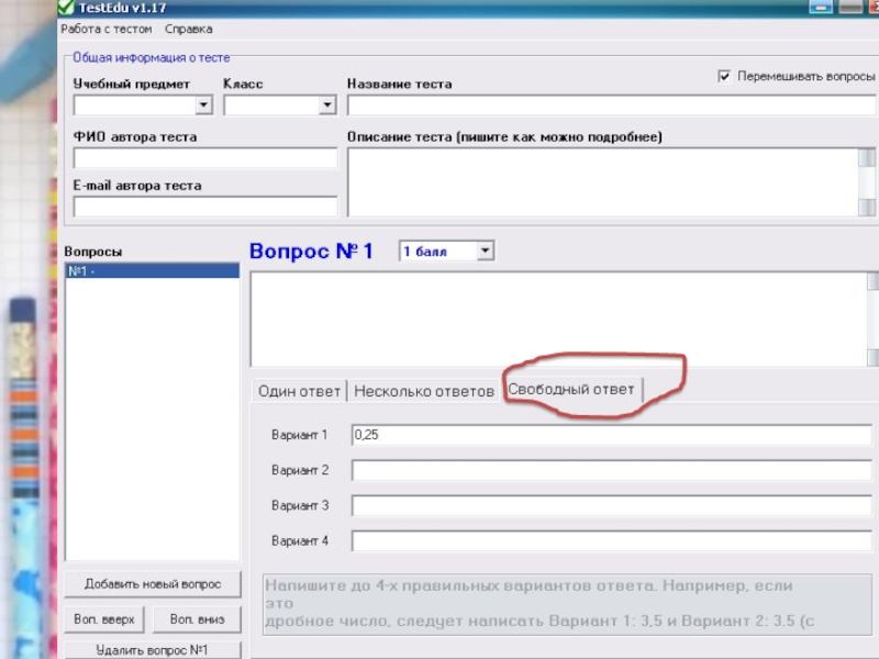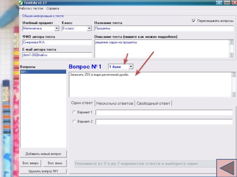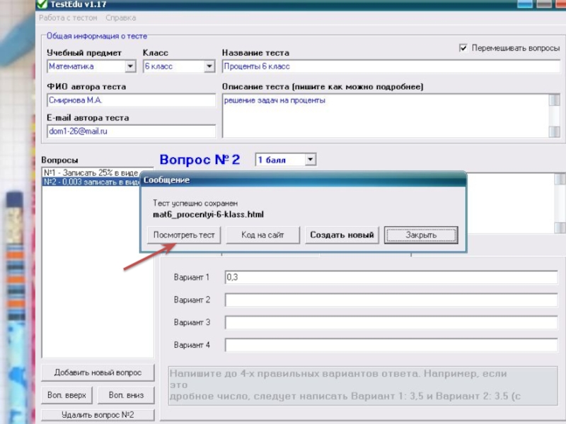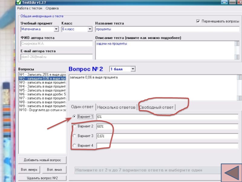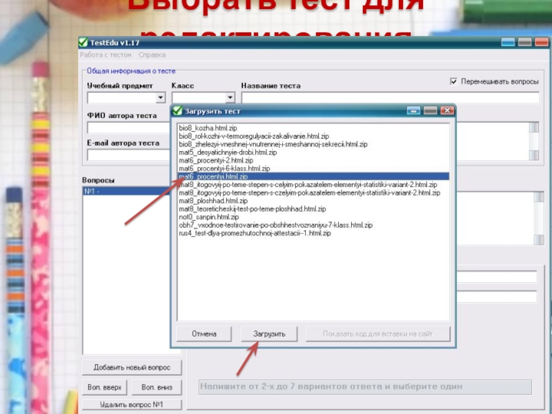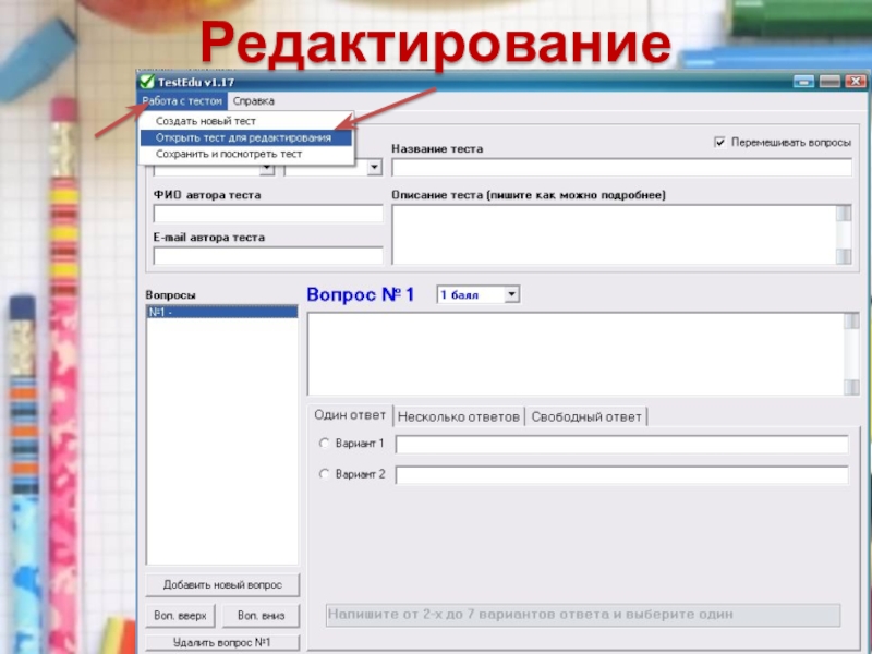 6. Редактирование теста
