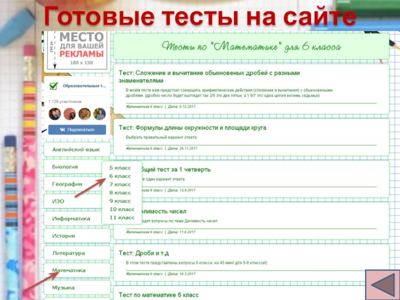 Тесты на сайте